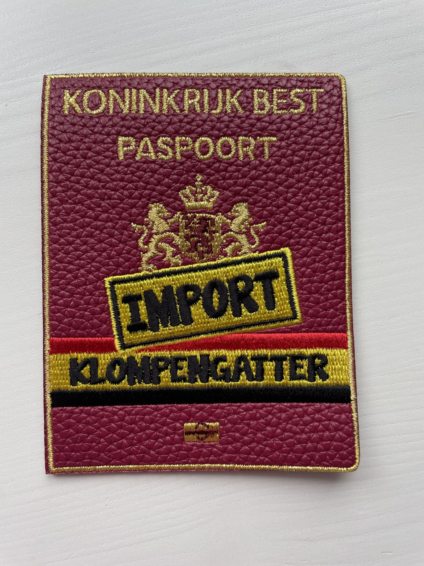 Laat trots zien waar je feest! Met dit stoere lederlook embleem laat je iedereen weten dat je er helemaal bij hoort — ook als import. Perfect voor op je pak of jasje.
